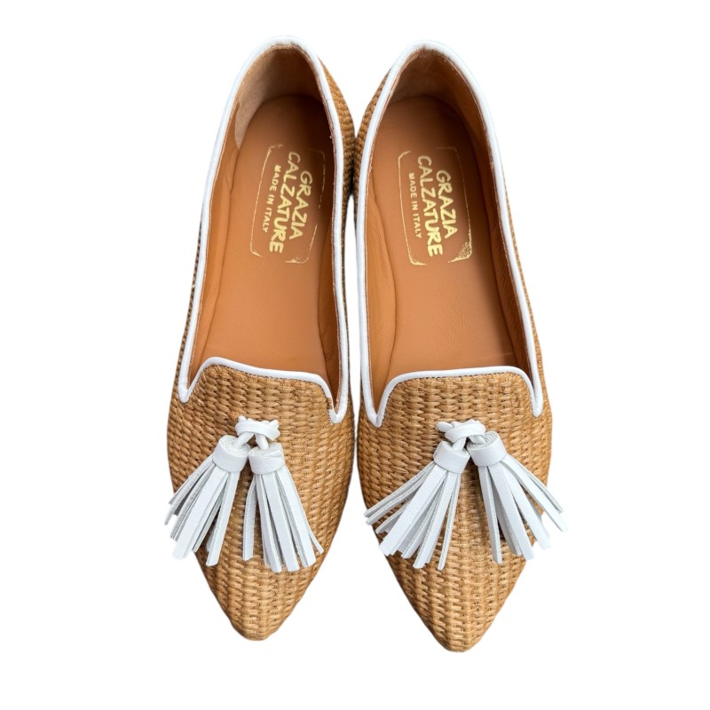ballerina in rafia lavorazione a sacchetto trasforma la scarpa come se fonde un guanto e si adatta perfettamente al piede plantare morbido e traspirante fodera in pelle adatta per le calzate più esigenti calzata regolare produzione artigianale