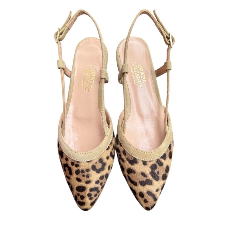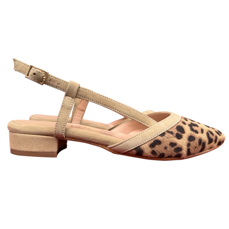 slingback Luna in pelle animalier maculato